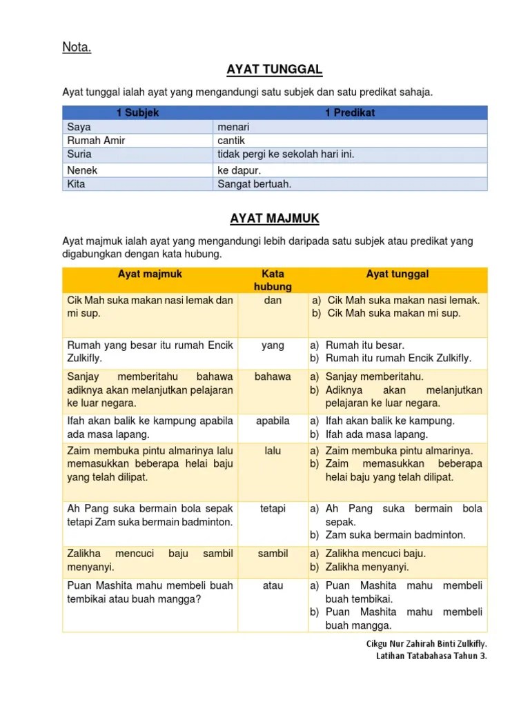 Contoh Ayat Kata Majmuk Tahun 3 - Ayat Majmuk Tahun 2